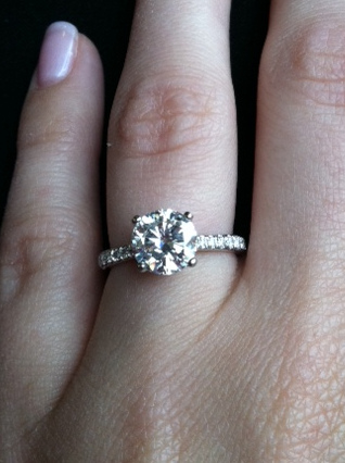 I’m loving my engagement ring. It is the exact setting I wanted and the center stone is even more perfect than I could have ever imagined. (And I worked jewelry retail for several years!) I love it so much that I almost ran a stop sign yesterday staring at my hand on the steering wheel. Ha!