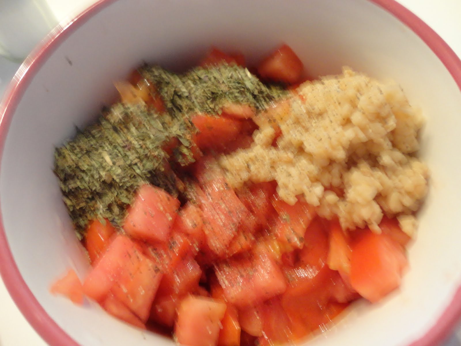 2. Now you have the bruschetta! Let it sit in the fridge while you prepare the rest of the dish.