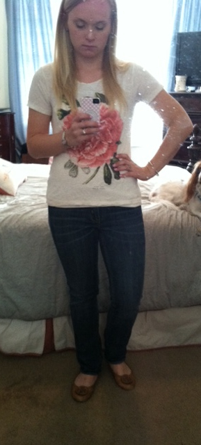 I wore this outfit for a casual Friday recently. The peony tee is from J.Crew, the denim is from J.Crew factory, and my flats are TB Revas.