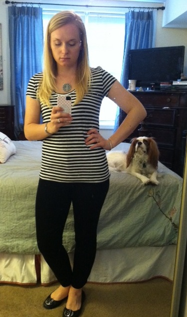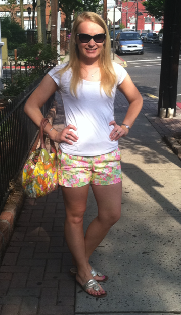 I was super excited when I was able to wear shorts to a happy hour. I almost didn’t post this photo because I’d already packed my straightener so I didn’t style my hair whatsoever. The shorts are by Lilly Pulitzer. I paired it with a simple necklace and a white tee from Loft. My bag is Kate Spade and the sandals are Jacks.