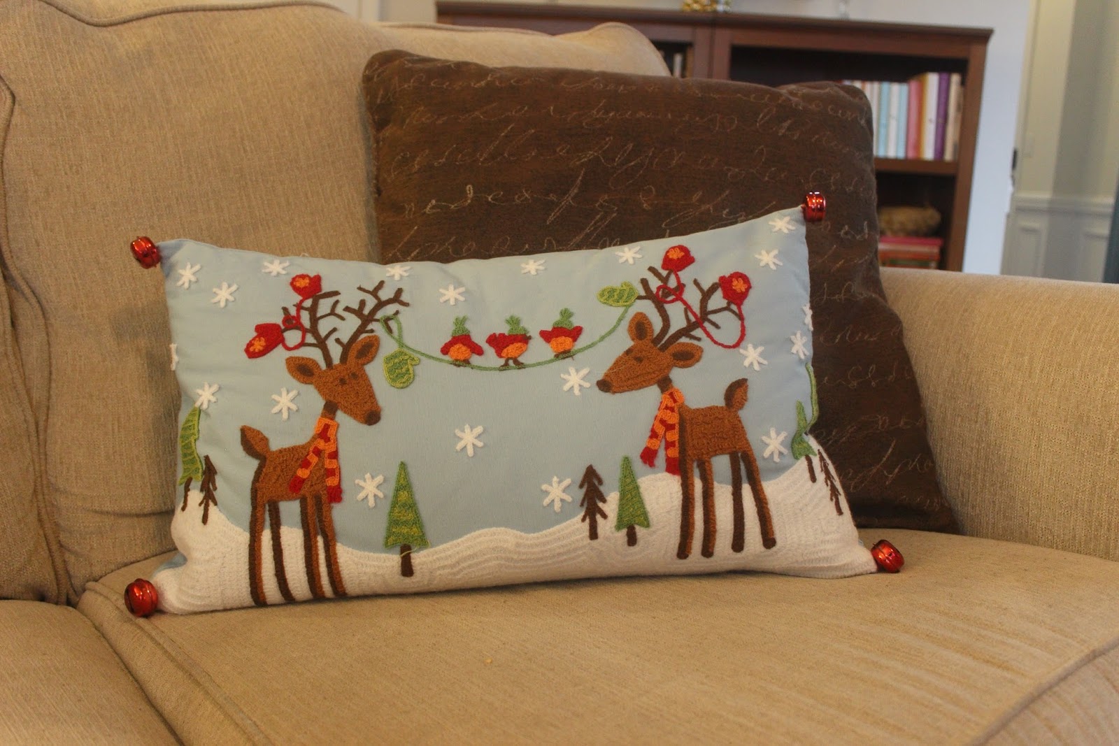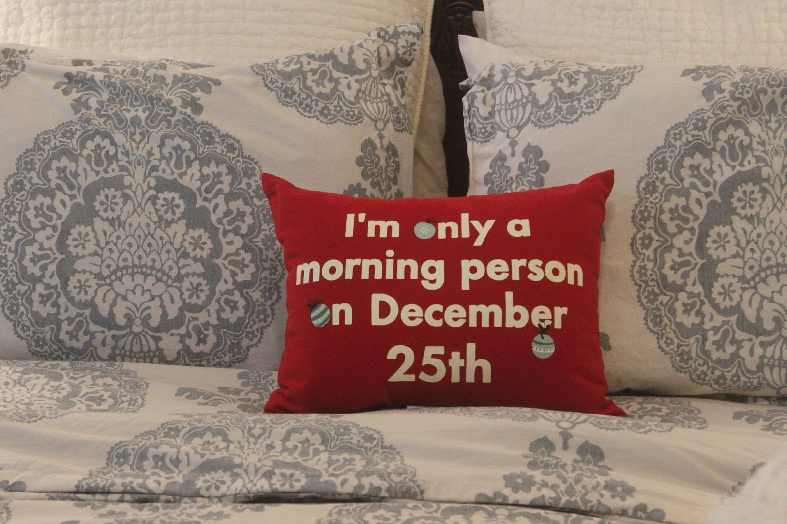 Upstairs, I keep it very simple by just changing out the throw pillow on each bed. I found these at Nordstrom Rack last year.