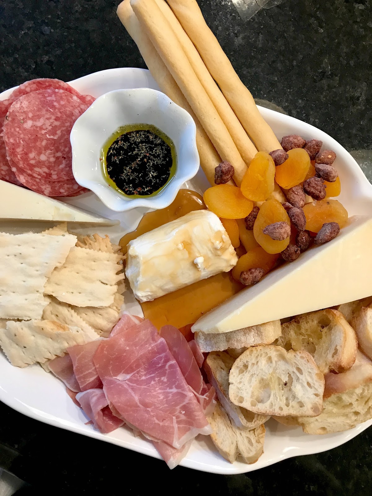 We recently started a supper club with two other couples and Saturday night was “Italian night.” I was charged with bringing an appetizer and dessert so I picked up cannoli’s from Fresh Market. We are pretty big cannoli snobs from our time in Hoboken and I would say Fresh Market’s rival the best of the best. Then, I put together this charcuterie plate for the appetizer. I posted a picture of it on Instagram and immediately got a request to bring one to Bunco tonight so I will be making it again. I swear by Aldi and Trader Joe’s for meats and cheeses.