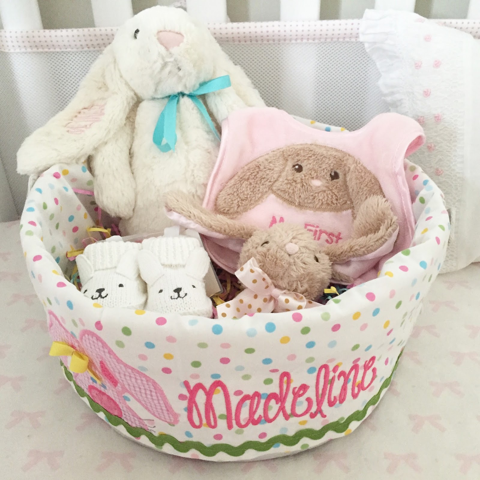 Easter is just around the corner and I have been busy getting Madeline’s Easter basket ready. I ordered the monogrammed Easter basket below for her when I was in labor in the hospital. It is from Etsy and we plan to use it every year. This year, now that she is a little bit older, I am going to start the tradition of putting it out empty for her the night before Easter so that the Easter Bunny can fill it when he comes.