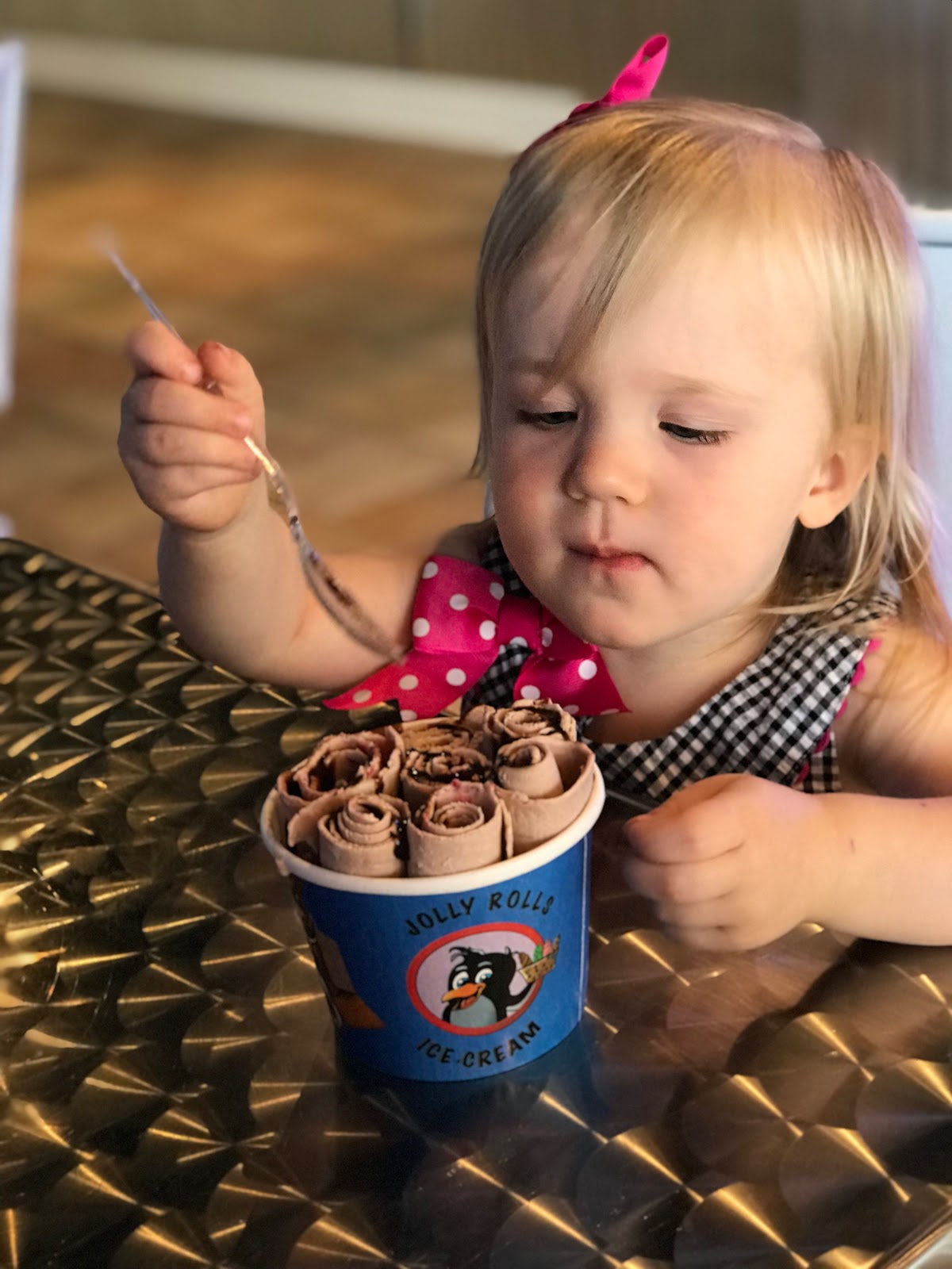 A new rolled ice cream place opened up near our house a few weeks ago and Madeline and I tried it out yesterday for a little ice cream date. She thoroughly enjoyed it. The process was prettt cool to watch but I still think I old fashioned, home style ice cream places better.