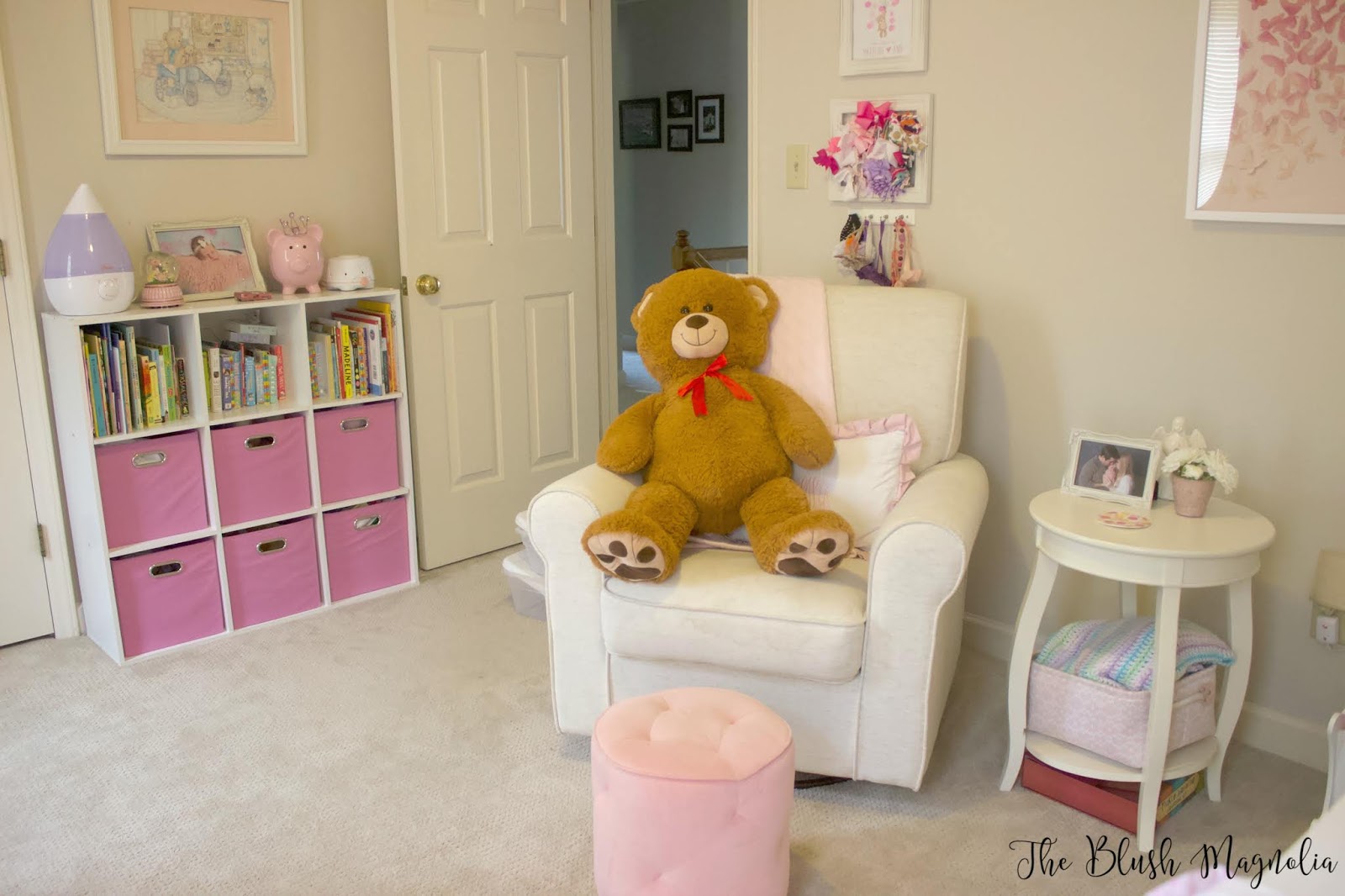 We closed on our home the week I went back to work from maternity leave and then moved with a four month old baby. It was an overwhelming time in our lives so I just did my best with making her room “work” and we all got used to it the way it was. In fact, I know it’s the only room she ever really remembers so I’m sure she thinks it is just perfect how it is.