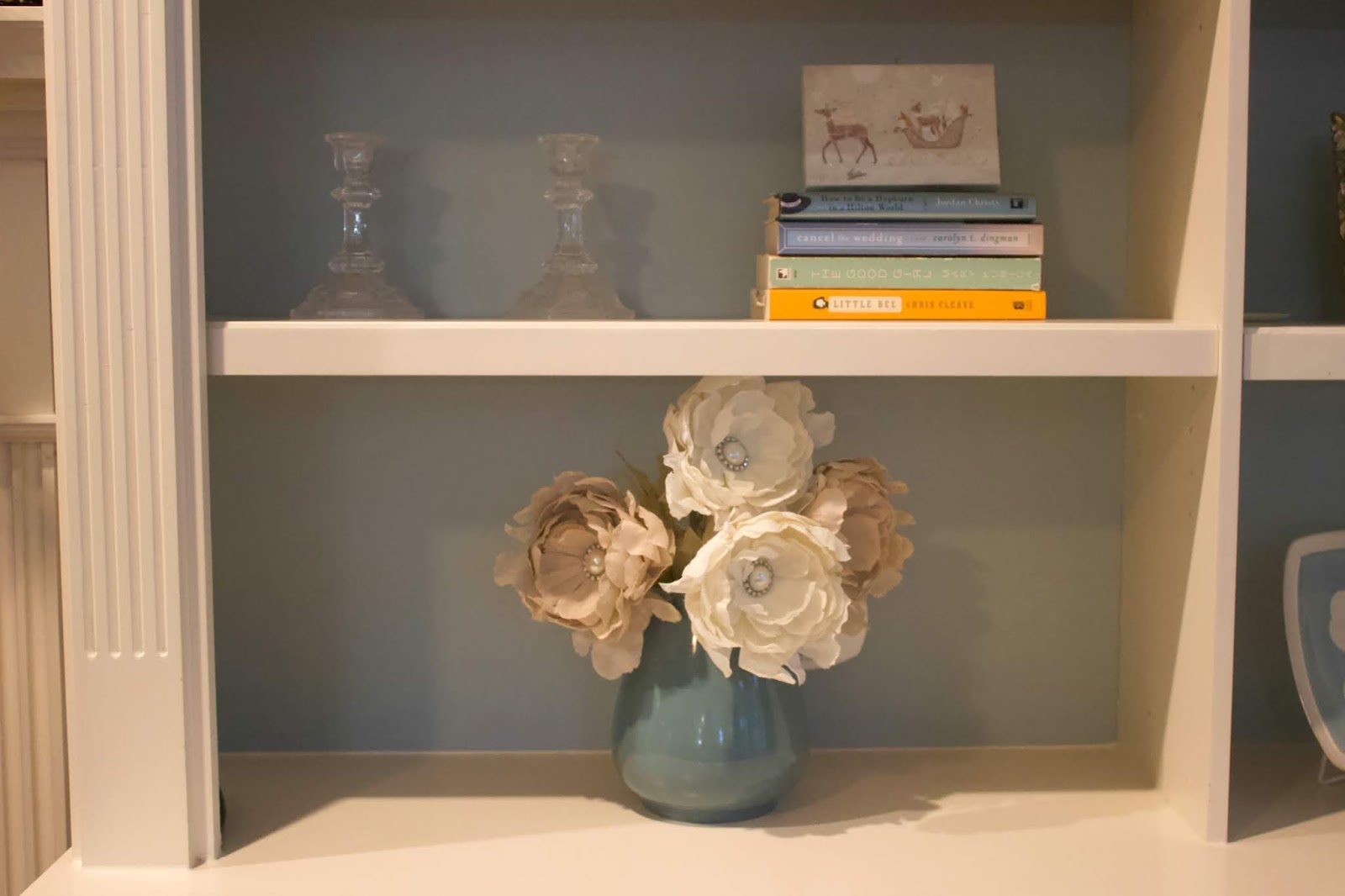 My mom also gave me this beautiful angel that I have on the buffet. Her colors match the blues and neutrals in our home perfectly.