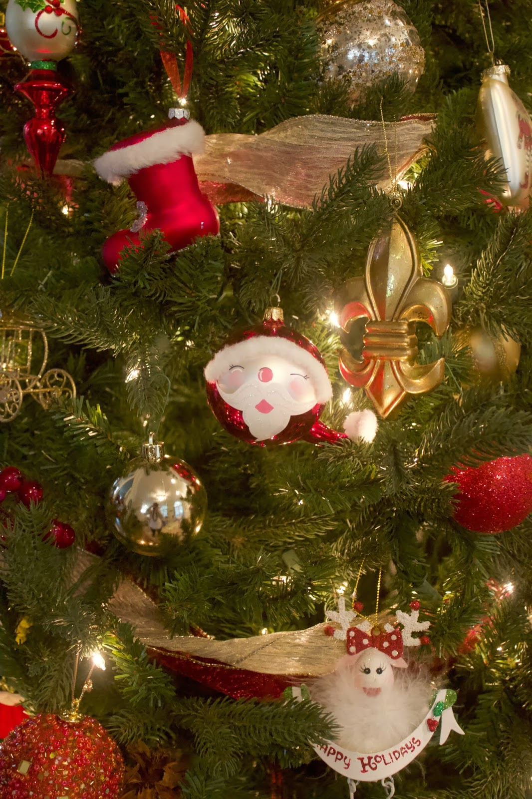 In Baby Boy’s room his tree is pretty simple. I strung a garland and made him a bow topper and then I let Madeline decorate his tree with a pack of shatterproof ornaments. He still needs lots more but I didn’t want to overdo it and ruin the fun of him getting to choose some things for himself as he gets older.