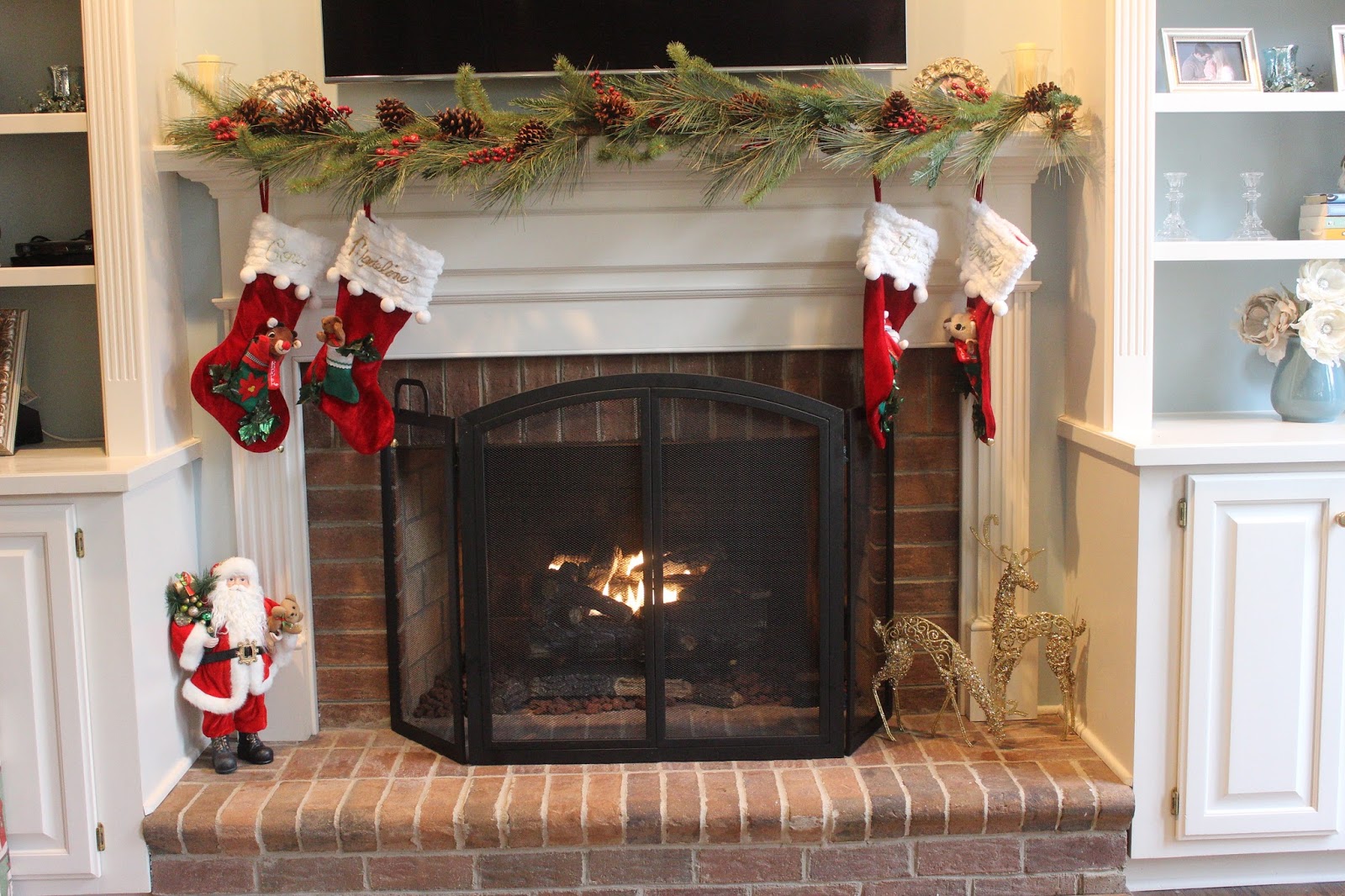 My garland is from At Home and my mom made the stockings for us. It started out with just mine, Corey’s, and Riley’s. I’m amazed by the fact that there are going to be five hanging there this year.